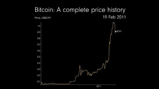 Биткойн (Bitcoin) - история движения цен / визуализация промежутка времени 2010г - 2023г