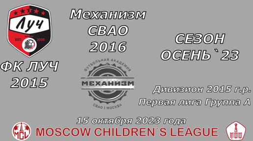 Запись футбольного матча ФК ЛУЧ 2015 - МЕХАНИЗМ 2016 15 октября 2023 года