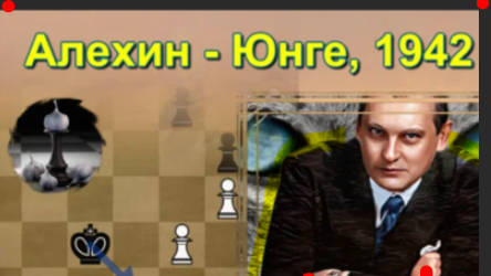 Александр Алехин (белые) проигрывает Клаусу Юнге в австрийском Зальцбурге, 1942. Возможно, поддавался, чтобы попасть в милость, 0-1
