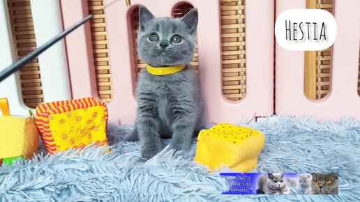Голубая британская кошечка Hestia. Позирует на камеру.