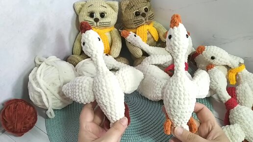 Вязание игрушек. Кот спицами. Плюшевые гуси крючком. Процесс и результат