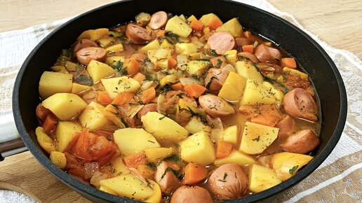 Рецепт овощного рагу с сосисками)!