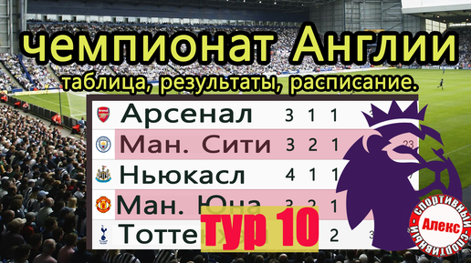 Чемпионат Англии (АПЛ). 10 тур. Результаты, расписание, таблица.