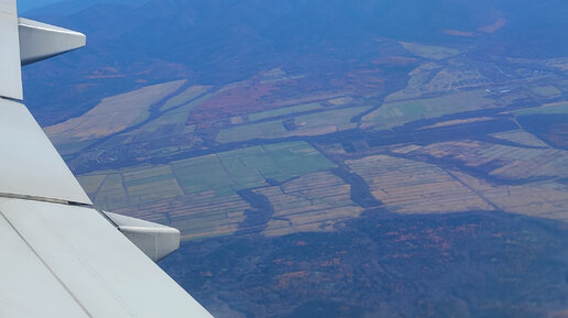 Взгляд на Южно-Сахалинск с борта самолёта