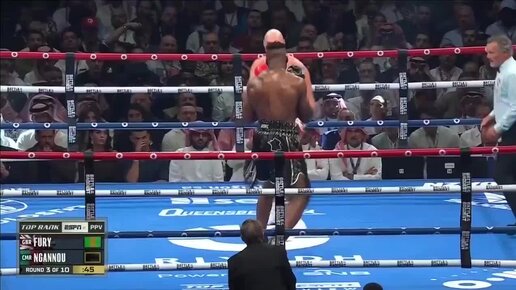 В 3 раунде поединка Нганну прекрасно справился с Фьюри, отправив его в нокдаун.