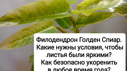 Филодендрон Голден Спиар. Как безопасно укоренять в любое время года? Какие нужны условия, чтобы листья были яркими?