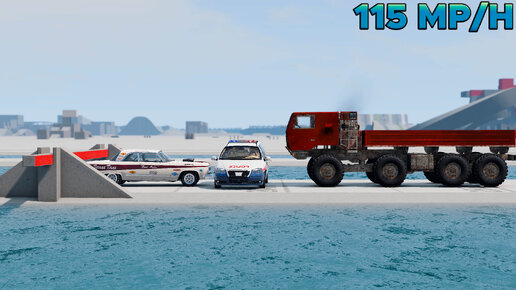 Большой грузовик против автомобил 115 миль в час . BeamNG drive