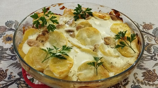 ВКУСНАЯ КАРТОШКА С ГРИБАМИ В ДУХОВКЕ Со сметаной