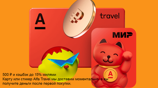 Альфа-Travel с кешбеком до 15% милями и Бонусом 500р за оформление