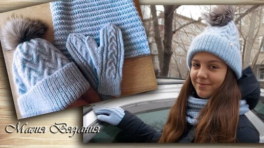 Теплый комплект для зимы. Шапка, снуд и варежки спицами