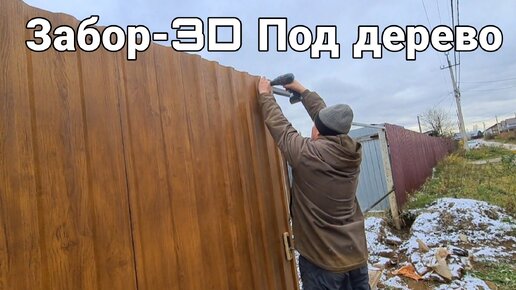 Установили забор из профнастила-3D Под дерево.