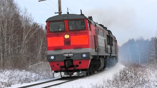 Гибрид 2ТЭ10УТ-0078 А/0095 Б с пассажирским поездом Новый Уренгой — Оренбург