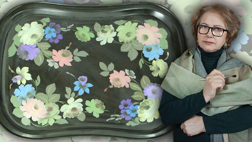 Цветы. Живопись маслом. Первый слой (Замалевок) на жостовском подносе гитарной формы. Мастер-класс от Ларисы Гончаровой