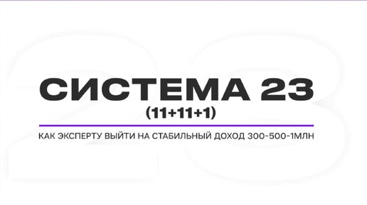 СИСТЕМА 23 - маршрутная карта к выходу на стабильные 300-500-1млн для экспертов и наставников любых ниш