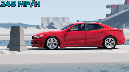 Автомобильное сопротивление против бетонного барьера 245 миль в час . BeamNG drive