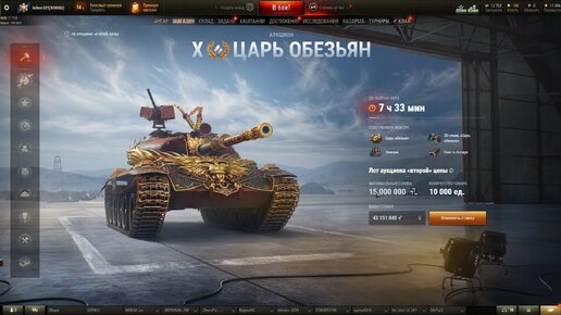 ЦАРЬ ОБЕЗЬЯН танк 10 урв за 15 000000 лямов. Ставим ставку в аукционе МИР ТАНКОВ