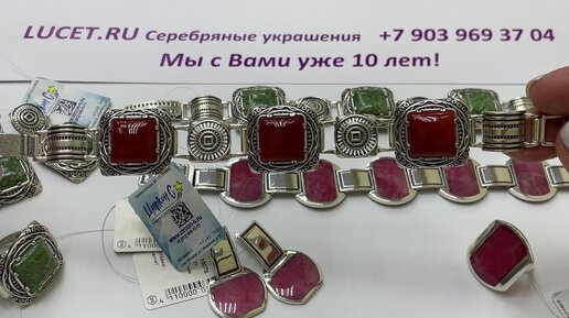 КРУПНЫЕ украшения из СЕРЕБРА- браслет, кольцо и серьги. Сердолик Родонит Жадеит