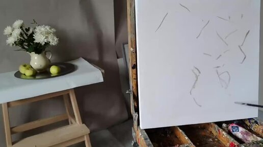 Белые хризантемы. Неяркие сложные цветовые сочетания. Живопись маслом.