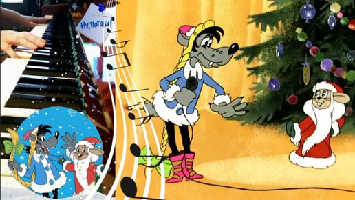 Ну погоди! - Расскажи Снегурочка где была - Новогодняя песня, кавер-версия рояль без вокала С АНИМАЦИЕЙ
