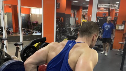 Тренировка дня. Швунг штанги 90 кг. Выходы силой на кольцах. Ходьба на руках. Жим гантели 30 кг сидя. Тяга штанги 80 кг в наклоне. Асаутбайк