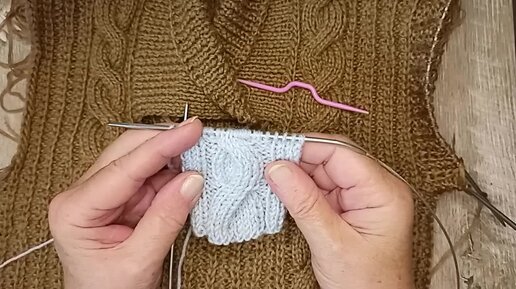 Как легко выполнить перекрещивание в жгутах с изнаночными петлями в середине. И полезная придумка от мастерицы.