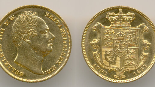 Нумизматика. Золотая монета. Англия, соверен 1831 года.