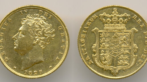 Нумизматика. Золотая монета. Англия, соверен 1825 года.