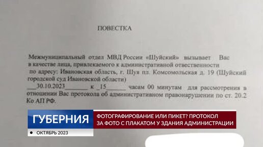 Фотографирование или пикет Протокол за фото с плакатом у здания администрации