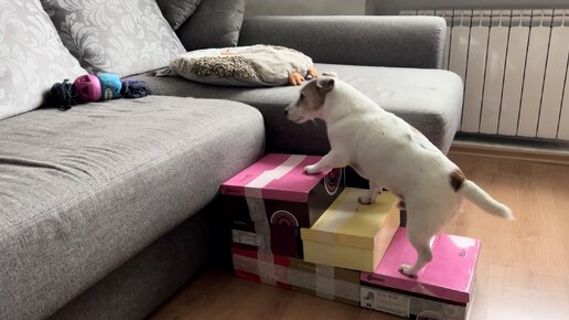 Старенький пёсик, лапки слабые стали. Придумали для Джека лестницу из подручных средств.
