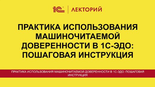 1C:Лекторий (19.10.23) Практика использования машиночитаемой доверенности в 1С-ЭДО: инструкция