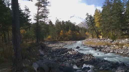Обалденно красивый вид на речку Баксан и Кавказские горы