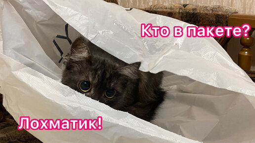 Кто залез в пакет? Котенок Лохматик! #cat #котики #котыприколы