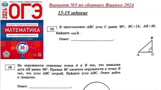 Вариант 5 ОГЭ 2024 по сборнику Ященко (Геометрия) 15-19 задание