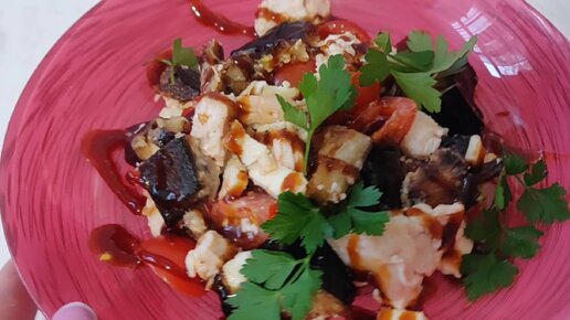 Салат с хрустящими баклажанами и курицей. Очень вкусно 👍