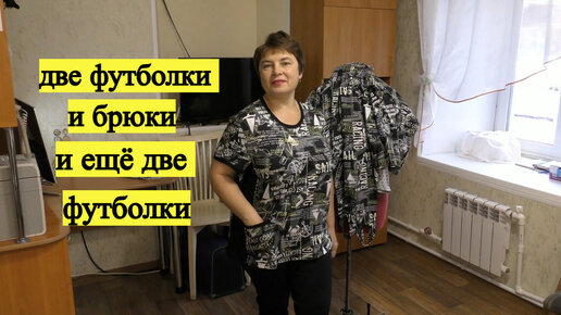 Две футболки и брюки и ещё две футболки .