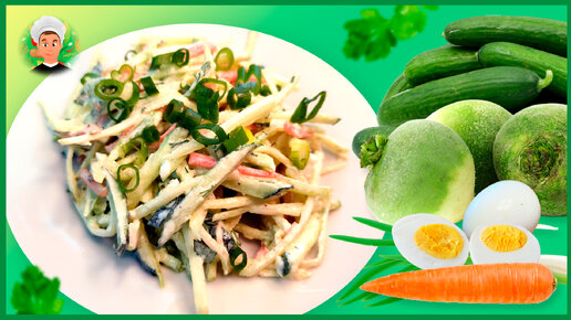 Простой, полезный и очень вкусный салат из зелёной редьки. Правильное приготовление!