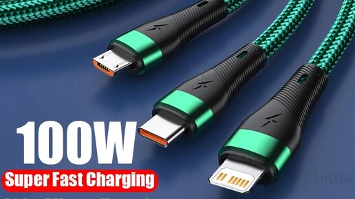 Сверхбыстрая зарядка 3 в 1 USB-кабель для Type C.