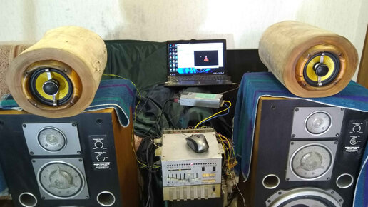 Самодельные музыкальные колонки из чурок.