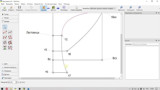Выкройка детских трусиков в программе ВАЛЕНТИНА