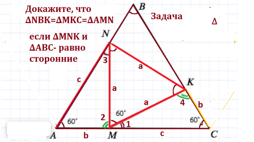 Доказать равенство треугольников, полученных когда в равносторонний треугольник вписали другой равносторонний треугольник