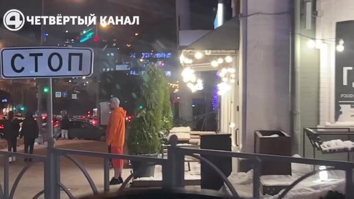 Он в шортах, остальные в пуховиках. Проснувшийся из зимней спячки
