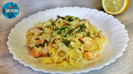 Быстрый и вкусный ужин как в ресторане! Паста с креветками.
