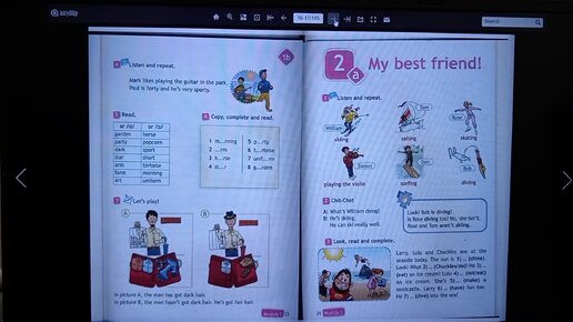 Spotlight 4 класс Английский в фокусе Модуль 1 Стр. 14 Что Вильям делает сейчас? Он катается на лыжах. Стр.166 Настоящее продолженное время