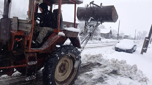 На тракторе т25 с установкой уборка снега