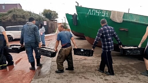 Адлер, ноябрь 2023, а вот и барабулька подоспела! Целая очередь покупателей ожидает, когда рыбаки выгрузят только что пойманную рыбку.