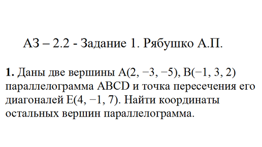 АЗ - 2.2 - Задание 1 Решебник Рябушко А.П. Высшая математика. Векторная алгебра. Помощь в учебе