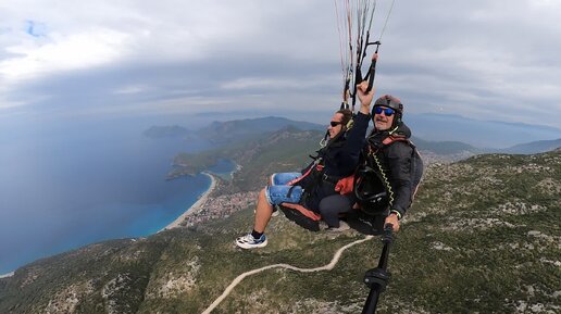 Арсений слегка управляет парапланом