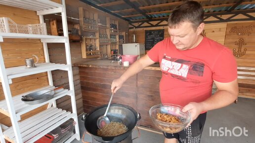 Вкусно жарим мясо в казане под самогоночку.