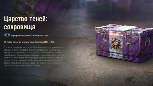 Царство теней! 33 КОНТЕЙНА Два Прем танка!!!!
