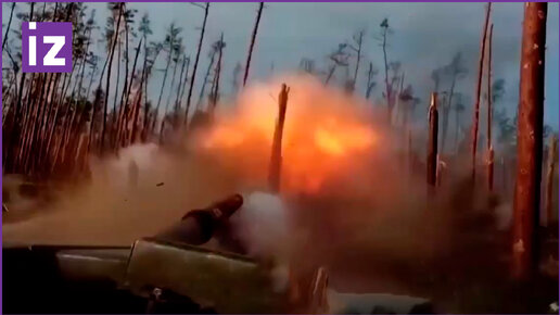 Танк РФ уничтожает украинские позиции в Серебрянском лесничестве